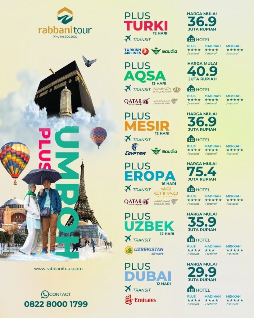 Rabbanitour menyediakan banyak pilihan paket umroh sesuai kebutuhan Anda dan Keluarga.