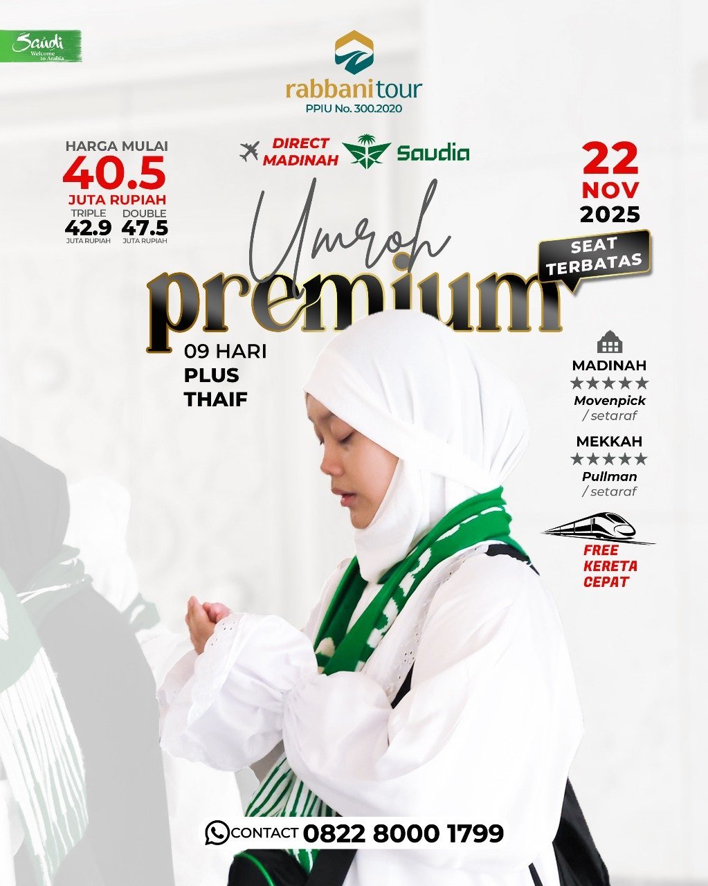 - Detail program bisa berubah sewaktu-waktu, untuk informasi lebih lengkapnya silahkan konsultasikan ke customer service Rabbanitour
