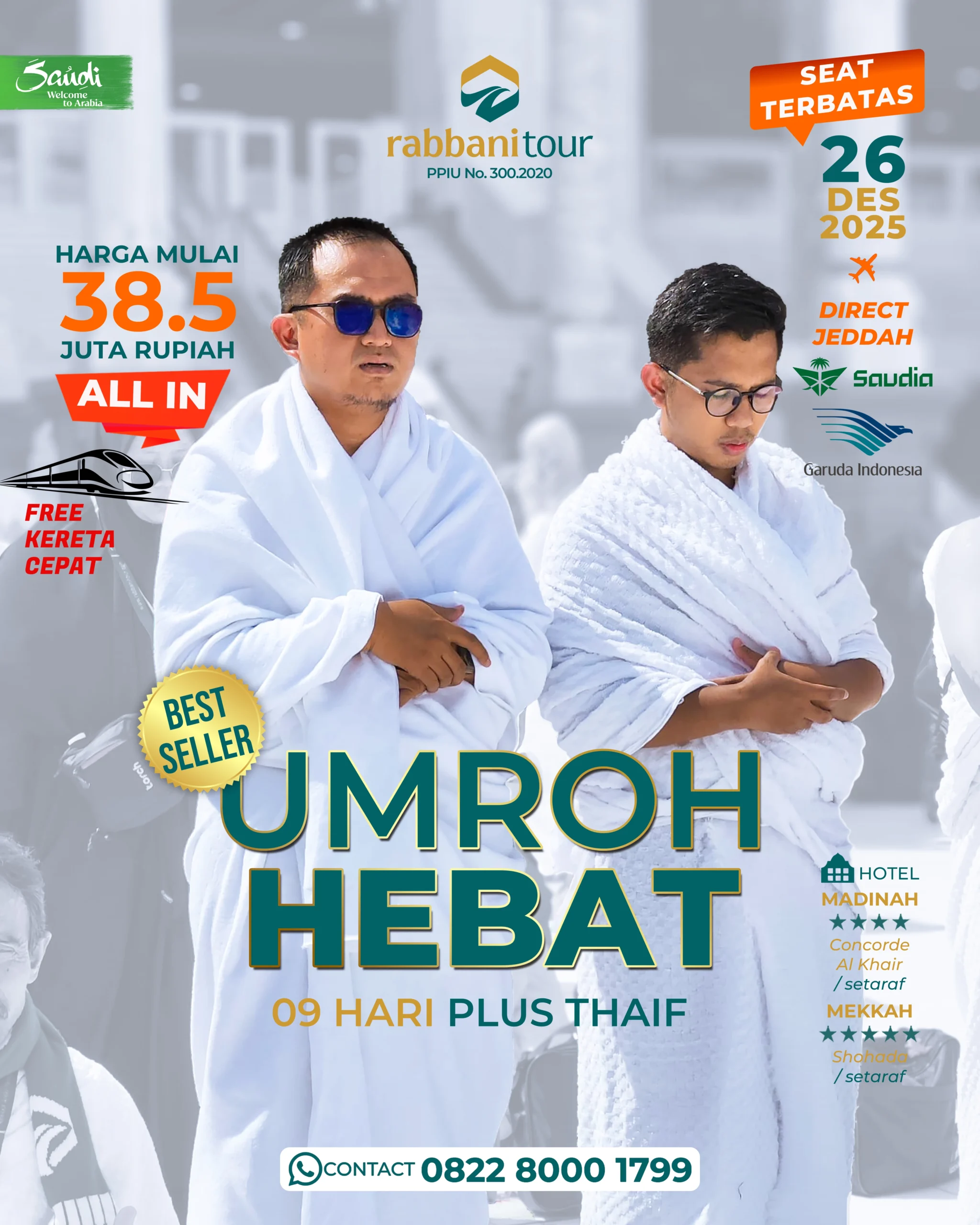 - Detail program bisa berubah sewaktu-waktu, untuk informasi lebih lengkapnya silahkan konsultasikan ke customer service Rabbanitour