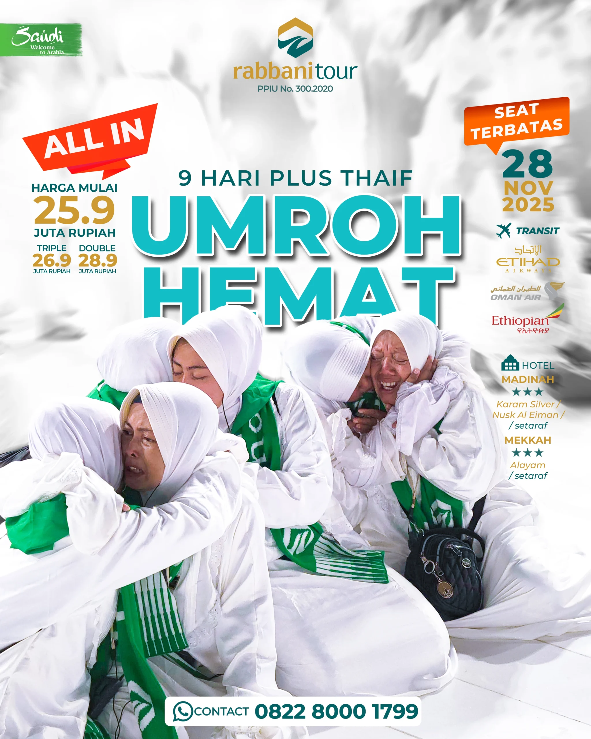 - Detail program bisa berubah sewaktu-waktu, untuk informasi lebih lengkapnya silahkan konsultasikan ke customer service Rabbanitour